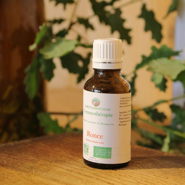 Miel d’acacia*, Alcool* 33°, Eau de source, Bourgeons de Ronce (Rubus fruticosus)*